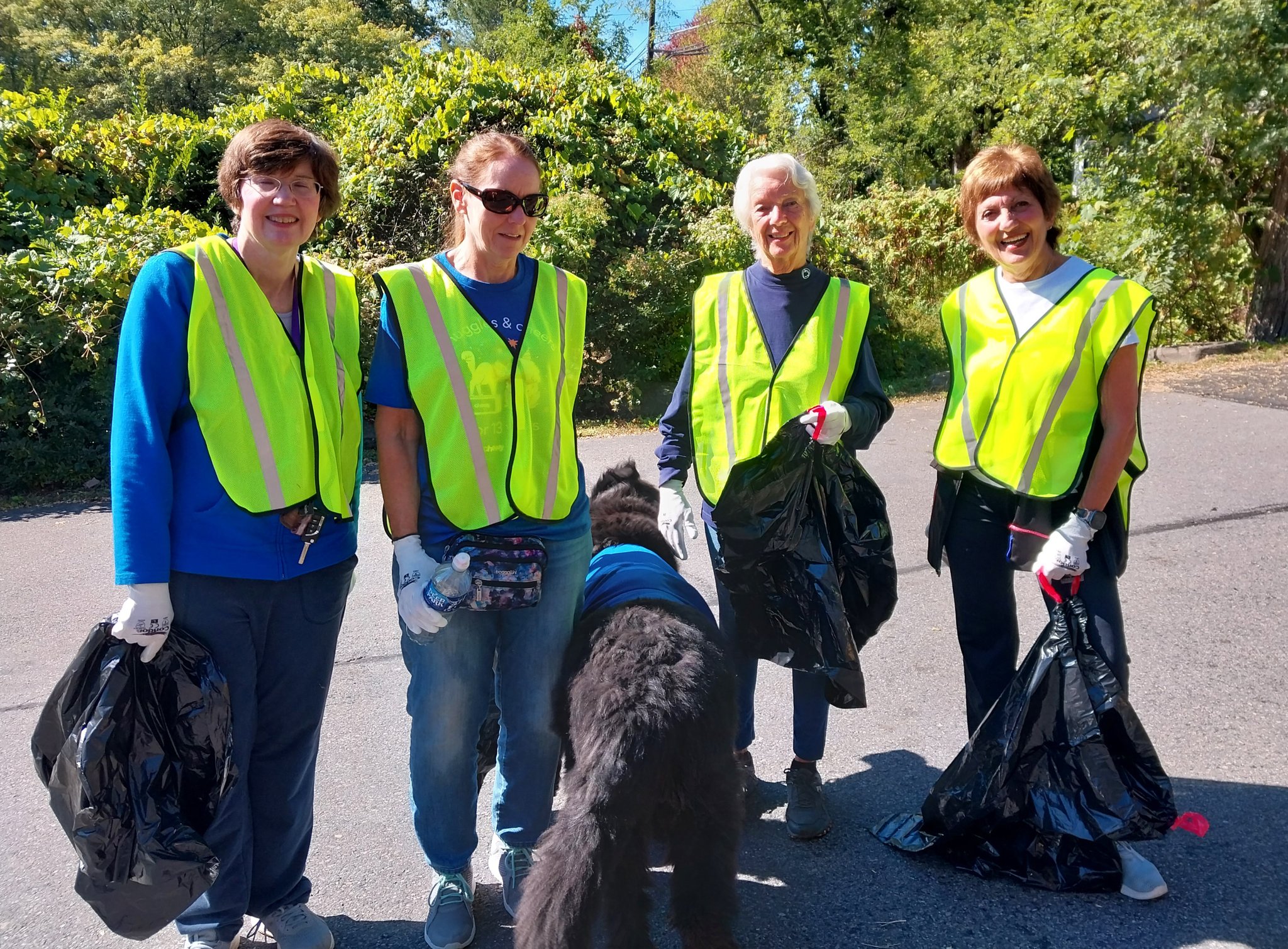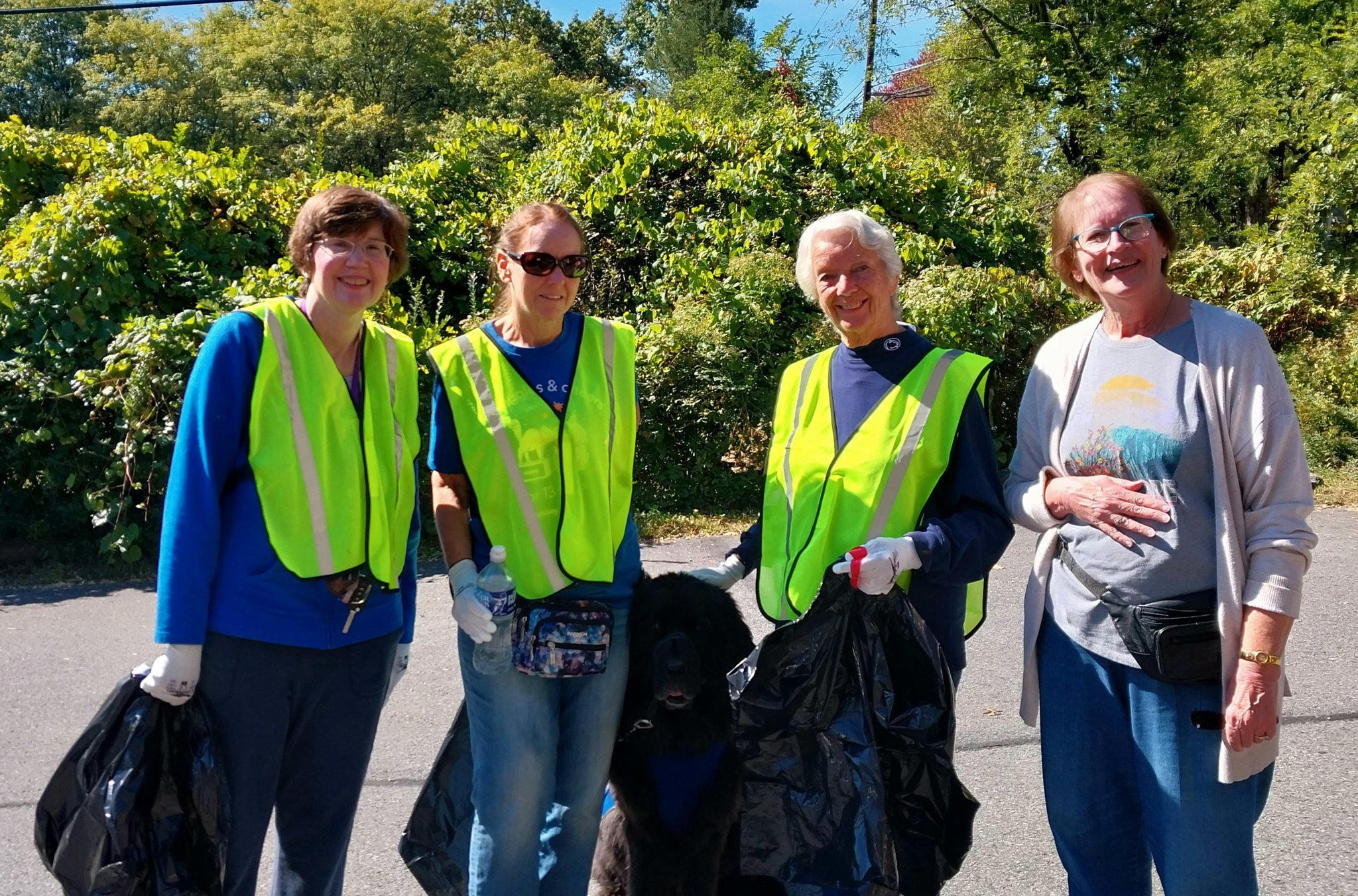 Fall Highway Cleanup Mary Ellen Durkin, Susan Veater, Susan Veater's Newfoundland Betty, Gerrie Carey and Liana Smith.